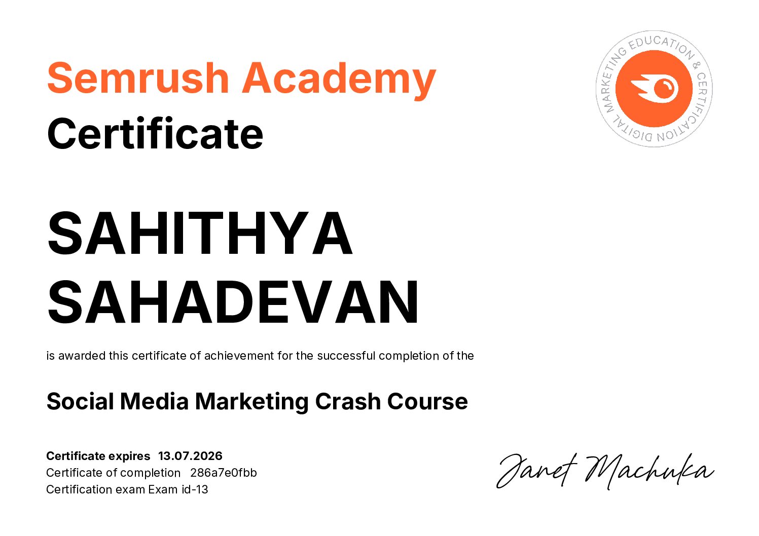 Hey, I am Sahithya Sahadevan, Best Digital Marketer in Thrissur. Here, as the best digital marketer, I help businesses improve their online visibility and reach the right audience through ethical and well-planned digital marketing strategies.